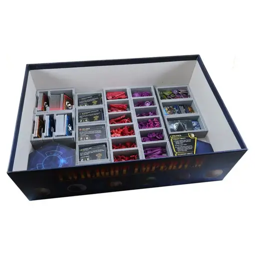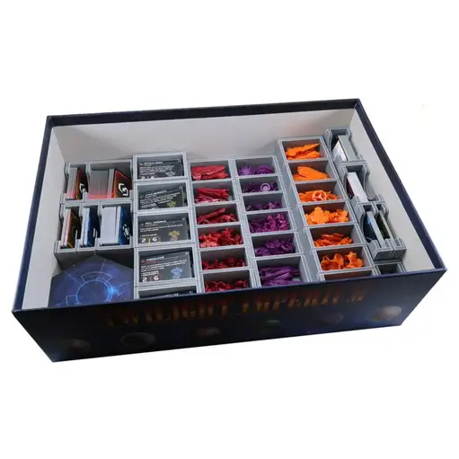 New Box Insert: Twilight Imperium Prophecy of Kings Organize your epic strategy game with the Box Insert: Twilight Imperium Prophecy of Kings from Folded Space—perfect fit for your TI4 + PoK box! Sales Tax: $1.89 $30 $27.99 Add To Cart Buy Now Description Box Insert: Twilight Imperium Prophecy of Kings — Premium Organizer SolutionWhen your copy of Twilight Imperium: Prophecy of Kings arrives, you’ll know it’s more than just an expansion — it’s a massive extension of your galaxy-spanning saga. And once installed inside the box, the sheer volume of components can feel overwhelming. That’s where this dedicated Box Insert: Twilight Imperium Prophecy of Kings from Folded Space steps in. Built specifically to slot into your base game box alongside the original insert, it keeps everything organized, easy to access, and ready for action.Organize like never before with this Folded Space Box InsertThis isn’t just any storage tray — this Folded Space Box Insert is crafted with precision. It consists of flat-pack Evacore sheets that fold into multiple layered trays designed to fit the box dimensions of the base game (43.3 × 30 × 13.4 cm) with the expansion included.Once assembled (using ordinary PVA glue), these trays allow you to:Store every component of the expansion (and base game if you already have the FS-TI4 insert) with easeOrganize cards, tokens, minis in dedicated compartmentsUse many trays directly during gameplay, improving setup and teardown speedWhy you need a Twilight Imperium Box InsertThe expansion for Twilight Imperium isn’t small—it adds seven new factions, 40+ system/hyperlane tiles, new technologies, new action cards, planet cards and more. Without proper organization, setup time and cleanup can stretch into frustrating territory.This Twilight Imperium Box Insert addresses those pain points:Everything has its place: faction trays, token trays, card trays, etc.The trays support sleeved cards too, ensuring your investment in card protection still fits.By reorganizing token trays (goods, infantry, fighters) and repurposing older trays for newly added components, the design efficiently uses all available space.Many users report that the insert significantly reduces setup time and makes teardown far simpler.Compatible with Twilight Imperium 4th Edition and Prophecy of KingsThe insert is designed to work seamlessly with the base game Twilight Imperium 4th Edition via the FS-TI4 foundation insert, adding compatibility for the expansion. When combined, the box still closes with only about 8 mm of lid-lift—minimal and barely noticeable.In short: if you own the base game and are adding the expansion, this insert ensures your box remains compact, accessible, and organized.Easy assembly, lasting resultsOne of the hallmarks of the Folded Space solution is its balance of premium design and do-it-yourself assembly. The insert arrives flat-packed—just glue the sheets, line up the trays, and your box is ready.The package includes detailed instructions.Materials: Evacore foam-core sheets, making it lighter than heavy wood inserts and less stress on the box.Assembly is described as “quick and fun,” yet users recommend setting aside time (often 1–2 hours) to glue carefully and let it dry for stability.Setup & Tear-down Made EfficientFor a strategy board game like Twilight Imperium, where multiple components and factions are involved, efficient setup and clear-away matter. This insert:Lets you store components vertically so they’re easy to remove and return.Creates dedicated trays that can be placed directly on the table during play (tokens, faction cards, etc.)Reduces “where did that token go?” moments with clearly labeled trays.Premium Storage, Minimal Box FootprintAlthough the box contains a vast number of components, the insert handles the expansion’s bulk gracefully:Tray re-allocation ensures that new factions, tokens, cards all fit into designated compartments.The insert supports sleeved cards—meaning if you invest in high-quality protection, you’re covered.According to users, despite the extra content, the box closes neatly and still performs well for transport.Perfect for the serious tabletop enthusiastIf you’re committed to your board game collection, this insert is a smart investment:Keeps your gaming shelf neat, your box manageable, and your play sessions smoother.Saves time and avoids frustration when managing large-scale games like Twilight Imperium.Helps preserve your game components by keeping them organized and securely stored.Installation overviewUnpack the flat sheets and separate them into the tray layers (Trays 1a, 1b, 2, 3a, etc.).Use ordinary PVA glue to assemble. Allow drying time.Place trays into the game box according to instructional layout:Bottom layers: system tiles, hyperlane tilesMiddle: token trays, faction componentsTop: cards, rules, boardsStore rules and boards on top of trays—the lid becomes the game board and player components lid.Start enjoying cleaner setup, faster play, and organized teardown.Does this work horizontally and vertically?Yes. Many users report being able to store the box upright (vertically) thanks to the insert’s design. The lid-lift is small enough (8 mm) that vertical storage is still feasible.Key benefits of the Box Insert: Twilight Imperium Prophecy of KingsIdeal fit for expansion components (plus base game when combined with Box Insert FS-TI4).Supports sleeved cards, avoiding common storage issues.Dramatically reduces setup/cleanup time for complex games.Lightweight yet sturdy material—less weight than wood yet durable.Organized compartments improve component longevity, reduce missing pieces.Preserves box integrity and still allows transport/storage.Final thoughtsIf you’re serious about your board-game hobby, especially epic strategy titles like Twilight Imperium, then skipping over an organizer like this simply invites chaos—missing tokens, sprawling piles of cards, awkward setup and 