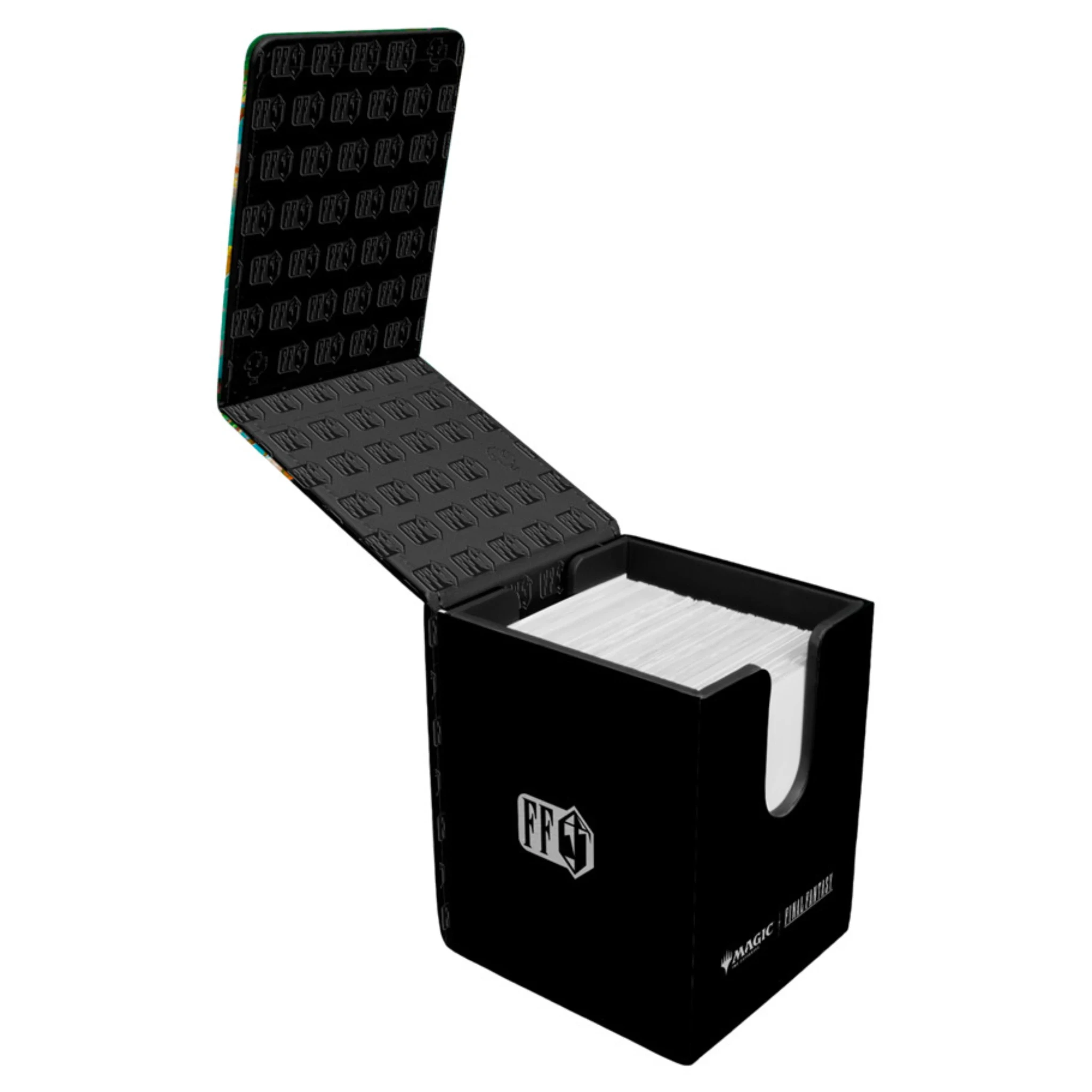 New Ultra Pro Alcove Flip Deck Box Final Fantasy Chocobos The MTG Final Fantasy Deck Box by Ultra Pro offers durable leatherette construction and space for Commander decks! Sales Tax: $2.16 $34.99 $31.99 Add To Cart Buy Now Description Ultra Pro Alcove Flip Deck Box Final FantasyThe Ultra Pro Alcove Flip Deck Box Final Fantasy brings together premium card protection and iconic Final Fantasy artwork in a storage solution built for serious trading card game players and collectors. Designed for durability, presentation, and daily play, this deck box blends functional engineering with visual appeal inspired by the world of Final Fantasy.The Ultra Pro Alcove Flip Deck Box is designed specifically for Final Fantasy trading cards and is categorized as a best seller in collectible trading card cases.Whether used for Magic the Gathering, Commander formats, or other standard-size trading card games, this deck box provides secure storage for valuable decks while reflecting the artistry and legacy that Final Fantasy fans recognize instantly.This product is part of a collaborative project between Ultra Pro and the Final Fantasy franchise, featuring special designs like the BLACK CHOCOBO card. For more details about features, release dates, and additional options, check the product pages.Final Fantasy Deck Box Designed for Premium Card ProtectionAs a Final Fantasy Deck Box, this Alcove Flip model is crafted to protect decks that see frequent use while maintaining a refined look suitable for display. The exterior features a full-color leatherette finish that resists wear and feels substantial in hand.This deck box is built to hold up to 100 double-sleeved standard-size cards when paired with Ultra PRO Deck Protector sleeves. That capacity makes it ideal for Commander decks, tournament-ready Magic the Gathering builds, and carefully curated collections that require both space and structure.MTG Final Fantasy Deck Box for Magic the Gathering PlayersMagic the Gathering players will appreciate how this MTG Final Fantasy Deck Box meets the practical demands of gameplay while showcasing licensed artwork. Commander decks, which often include a wide range of cards and foils, fit comfortably within the box without bending or compression.The Alcove Flip design ensures that cards remain aligned and protected during transport, making it suitable for weekly game nights, events, and long-term storage. For Magic players who value presentation as much as performance, this deck box offers a balanced solution.MTG FFx Deck Box Built for Commander and Competitive FormatsThe MTG FFx Deck Box format is especially popular among Commander players who need reliable storage for larger decks. With space for 100 double-sleeved cards, this deck box accommodates full Commander builds without compromise.The interior layout supports smooth card retrieval, while the dual thumb notches allow players to access their deck quickly between games. This thoughtful design reduces handling stress on cards and sleeves, preserving their condition over time.Ultra Pro Alcove Flip Deck Box Final Fantasy Construction and MaterialsThe Ultra Pro Alcove Flip Deck Box Final Fantasy is constructed with a rigid core wrapped in a premium leatherette exterior. This structure provides impact resistance while maintaining a sleek profile that fits easily into backpacks and storage cases.Strong magnetic closure keeps the lid securely shut during transport. The magnets are calibrated to balance security with ease of access, preventing accidental opening without making the box difficult to use.You can find a place to purchase the Ultra Pro Alcove Flip Deck Box at various online retailers, including Amazon and Best Buy, making it easy to buy this product.Final Fantasy Artwork and Thematic DesignFinal Fantasy fans will immediately recognize the visual language featured on this Final Fantasy Deck Box. The artwork reflects key themes and characters from the franchise, offering a collectible aesthetic that stands apart from generic deck storage options.Special editions of the deck box feature iconic characters such as Cloud as the planet's champion and Sephiroth as the planet's heir, highlighting their significance and exclusive roles within the Final Fantasy universe.This deck box is not only a functional accessory but also a piece of licensed merchandise that resonates with long-time fans. It fits naturally into collections that include Final Fantasy cards, accessories, and display items.Deck Box Compatibility with Standard Size CardsThis deck box is designed specifically for standard-size trading cards, making it compatible with Magic the Gathering, Commander Legends, and other popular card games that use the same dimensions.When used with Ultra PRO Deck Protector sleeves, the box holds up to 100 double-sleeved cards securely. This compatibility ensures that players do not need to remove sleeves or compromise protection to make their deck fit.Alcove Edge Deck Box Design BenefitsThe Alcove Edge design enhances both usability and durability. Rounded interior corners help prevent sleeve catching, while the rigid outer shell maintains structural integrity even with frequent use.The Alcove Flip lid opens fully, allowing players to access their deck without obstruction. This makes setup and teardown during games faster and more efficient, particularly in tournament or group play environments.Magic the Gathering Storage for Players and CollectorsAs a Magic the Gathering storage solution, this deck box supports both active play and long-term care. Players who rotate between multiple decks can rely on consistent protection, while collectors can store prized builds with confidence.Serialized versions of cards, such as the Golden Chocobo, are among the most sought-after in the set and are often sold quickly due to high demand.The secure closure and protective materials reduce exposure to dust, light, and physical stress. This is especially important for decks that include foil