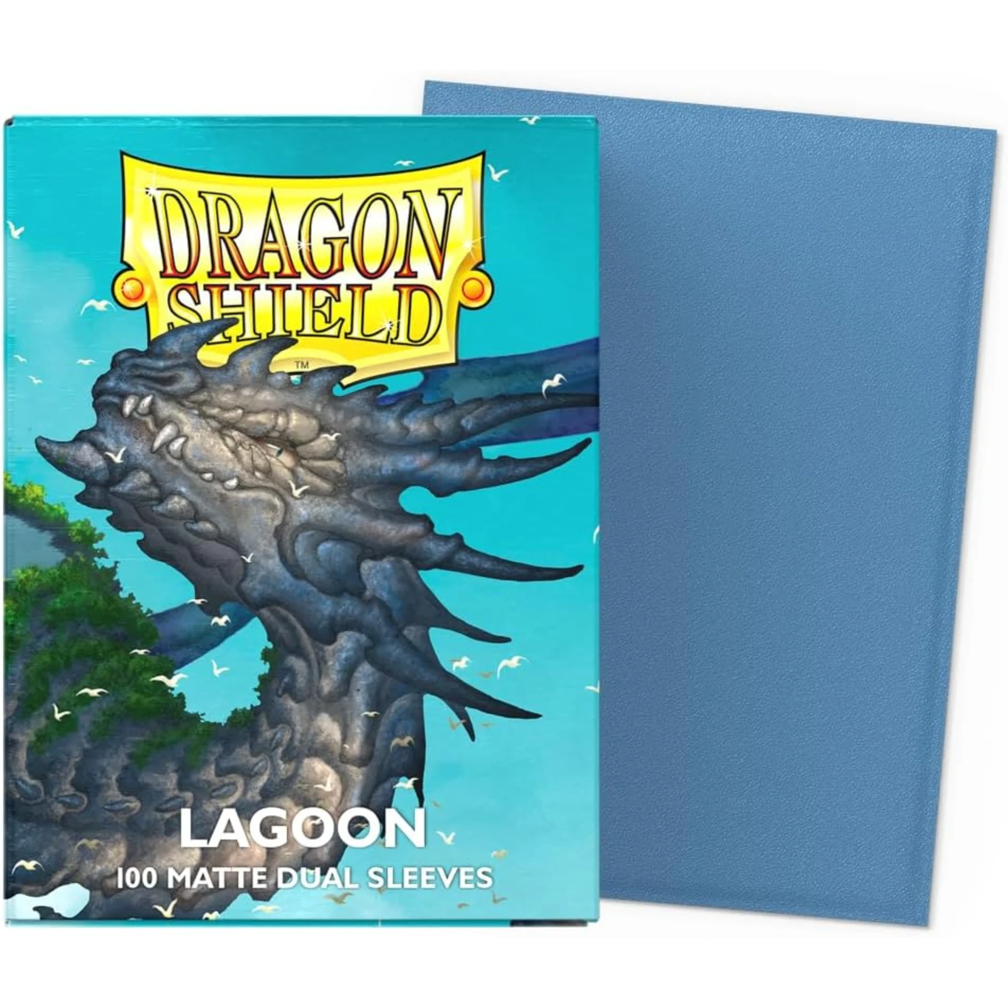 Dragon Shield Matte Dual Sleeves - Lagoon Dragon Shield Dual Matte sleeves. Clear front and a textured matte back. Fully opaque sleeves with a black interior, an elegant backdrop for black bordered cards. Sales Tax: $1.01 $14.99 Add To Cart Buy Now Description Lagoon, cool and relaxing. Dragon Shield Dual Matte sleeves. Clear front and a textured matte back. Fully opaque sleeves with a black interior, an elegant backdrop for black bordered cards. The sturdy cardboard box fits 75+ single sleeved cards or 65+ double sleeved cards. Every box has a label on the top for personalization. Technical Data Product Details Count 100 Finish Back Dual Matte Finish Front Matte Inside Color Black Size 66mm x 92mm