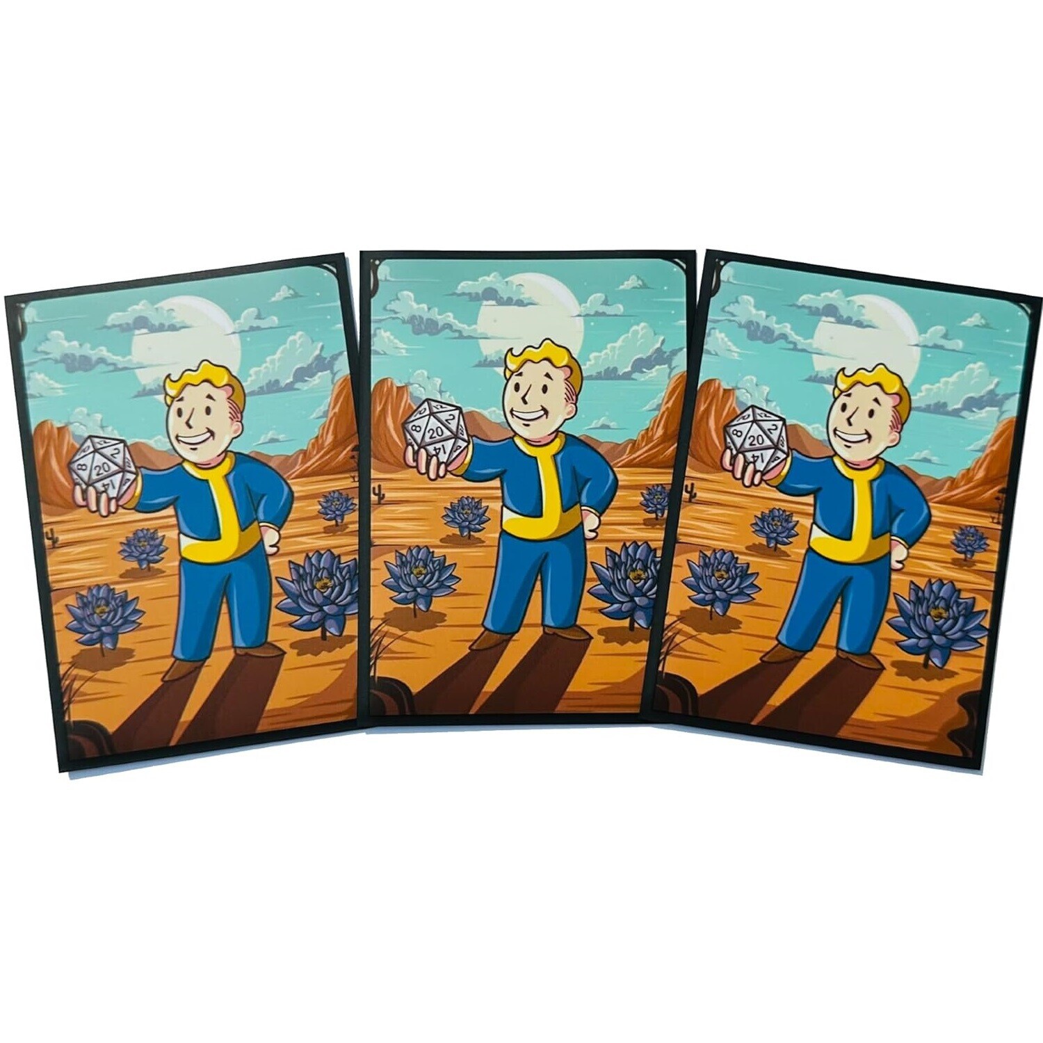 New Fallout Sleeves Vault Boy - AI Armor MTG Textured Sleeves - 100 ct The Fallout Sleeves Vault Boy design by AI Armor is one of our favorite Fallout Sleeve designs! Superior matte printed artwork and semi-gloss front these durable and stylish AI Armor card sleeves are sure to delight! Pick up your pack off 100 sleeves from Sales Tax: $1.15 $16.99 Add To Cart Buy Now Description Fallout Card Sleeves: Vault BoyEnter the post-apocalyptic world of the tabletop game Magic: The Gathering with Fallout Card Sleeves by AI Armor where style meets function in a world gone nuclear and crazy. Inspired by the Fallout universe these card sleeves will protect and look rad on your deck. Whether you’re a Magic player or a Fallout fan these sleeves will take your game to the next level with high res art and durable build. Grab a Nuka Cola and get ready to venture into the wasteland with Fallout Card Sleeves that match your Magic: The Gathering collection. Plus, you can save on shipping costs when you purchase multiple Fallout accessories together.These MTG card sleeves are a favorite among casual and competitive players for the quality of the material, the design and the glare free experience. For players who want to make a statement on the battlefield these Fallout Card Sleeves let you show off your love for the Fallout universe while protecting your deck from damage. Whether you’re in a Commander game or a kitchen table game these sleeves will withstand the most brutal play.Product OverviewThe Fallout Vault Boy Sleeves are a premium accessory designed specifically for Magic the Gathering players. The card sleeves provide top-notch protection for your MTG Fallout cards, ensuring they remain in pristine condition for years to come. Whether you’re a seasoned collector or an avid player, these sleeves are a must-have for any Fallout enthusiast.Why Fallout Card Sleeves?The AI Armor Fallout Card Sleeves are more than just another deck protector; they’re a piece of post-apocalyptic armor for your cards, durability and style in every game. Here’s why Fallout fans and Magic: The Gathering players love them:High-Res Fallout Vault Boy Artwork: Each sleeve has a stunning Fallout Vault Boy design, printed in high res to capture every detail. The iconic image is a must have for any Fallout fan, survival, grit and determination.Matte Back for Great Grip: The matte back of the sleeves gives you a non-slip grip, shuffling and handling your cards is easy even in the most intense moments of a game. This design allows for smooth shuffling without compromising the look or feel of your deck.Semi-Gloss Front for Glare Free: The semi-gloss front keeps your cards visible without any annoying reflections, so your deck looks its best under any lighting. Whether you’re playing in a tournament or at home these sleeves keep your Magic cards easy to read and glare free.Durable and Protective: Made from archival safe materials these Fallout sleeves have reinforced seams to withstand the abuse of shuffling and intense gameplay. Acid free and PVC free so your Magic: The Gathering cards are protected and will stay in great condition over time.MTG Deck Ready – Perfect for Commander: Each pack contains 100 sleeves, perfect for Commander decks or any standard Magic: The Gathering deck. These sleeves fit all standard sized cards and are style and function.If you ever decide to sell your collection, these sleeves will ensure your cards remain in top condition, maximizing their value.Key FeaturesPremium Design: These card sleeves are crafted specifically for Fallout cards, offering a perfect fit and superior protection.Ultimate Protection: Shield your cards from wear and tear, scratches, and damage with these high-quality sleeves.Durable Materials: Made from top-notch materials, these sleeves are built to last, ensuring your cards stay in mint condition.Versatile Compatibility: Compatible with both 57 x 89mm and 41 x 63mm card sizes, these sleeves are perfect for a variety of games.Collector’s Choice: Ideal for collectors and players who want to keep their cards in pristine condition.Archival Safe: Made from archival safe materials to ensure your cards remain in pristine condition over time.Nuka Cola and Vault Boy: Bringing Fallout to Your MTG ExperienceFor Fallout fans these card sleeves are more than just deck protectors they’re a way to show off your love for the Vault-Tec brand and all things post-apocalyptic. Whether you’ve spent hours exploring the wasteland or just love the look these Fallout Card Sleeves are the ultimate Magic accessory for the ultimate survivor.Each sleeve has the Vault Boy design with D20s, giving your deck a perfectly Vault-Tec Corporate feel while protecting it from the abuse of shuffling, bending and surface scratches. The high res art on the back of each sleeve has the Fallout Vault Boy, so you never forget the fight for survival in the wasteland.Looking for more Fallout themed accessories? Check out our Vault Boy collection and other Magic: The Gathering accessories to complete your post-apocalyptic gaming setup. Want a Commander deck full of Fallout nostalgia or just want to add some flair to your deck with Fallout sleeves? AI Armor has a full Fallout collection for you to choose from.Fallout Sleeves: Durable and StylishIn Magic: The Gathering your deck is your most valuable asset. That’s why you need sleeves that are designed to protect and last. The AI Armor Fallout Card Sleeves is a protective barrier for your cards that prevents damage from shuffling, keeps surface scratches away and minimizes wear from frequent play. These sleeves have reinforced seams built to last even in the most intense gameplay.Made with archival safe polypropylene materials AI Armor keeps your cards safe from acid and PVC damage over time. This is especially important for collectors who want to keep their cards in mint condition. The Fallout Card Sleeves are designed to protect maximum while looking stylish and