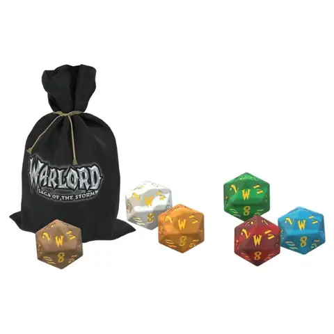 New Warlord Saga of the Storm: Dice Set & Bag This Warlord Saga of the Storm dice bag is emblazoned with the Warlord logo; containing 6 d20s each one colored for the game's 6 factions. Sales Tax: $2.02 $34.99 $29.99 Add To Cart Buy Now Description Contents: 1 Dice Bag 6 Twenty-sided Dice Technical Data Contents Dice Bag 1 D20 6