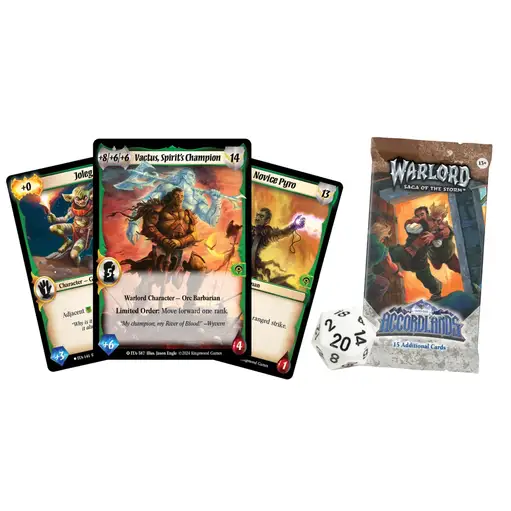 Starter decks contain common, uncommon, and rare cards as well as a d20, booster pack, and a Rare Warlord in exclusive EA treatment.