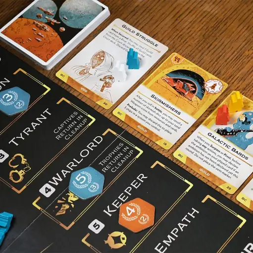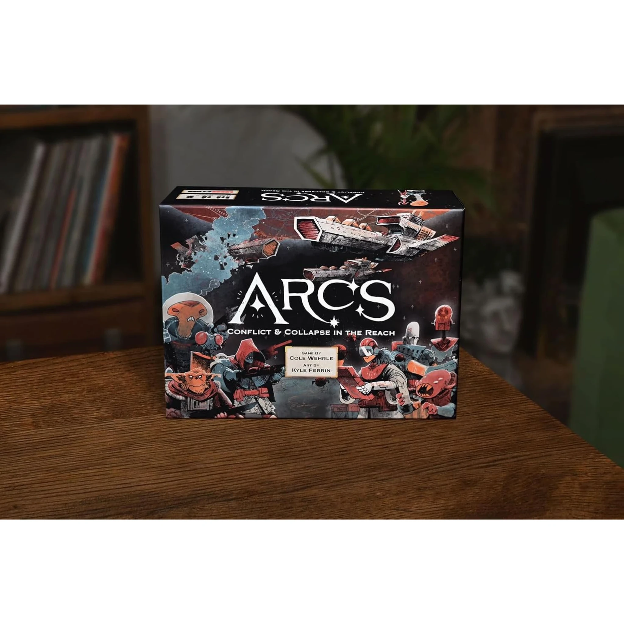 New Arcs: Conflict & Collapse in the Reach Arcs Board Game delivers dramatic twists through card driven action selection, ambitions, and quick battles in a tactical space opera setting! Sales Tax: $3.71 $60 $54.99 Add To Cart Buy Now Description Arcs Board Game OverviewArcs: Conflict & Collapse in the Reach is a sharp, tactical space opera board game set in a dark yet playful universe where players represent officials from a distant, decaying empire now free to compete for dominance across the galaxy. Whether through battle, gathering scarce resources, or diplomatic intrigue, Arcs places players into a dynamic struggle shaped by ambition, timing, and clever decision making.This Arcs board game combines trick taking inspired mechanics with strategic resource management and tactical positioning. Each round introduces dramatic twists as players declare ambitions, adapt to shifting threats, and attempt to score the most points before rivals take control of the Reach.Arcs Conflict & Collapse Gameplay SystemAt the heart of Arcs Conflict & Collapse is a unique action selection system driven by a deck of cards divided into four suits. Each card played determines not only the actions available to the first player but also how other players may follow suit using the same action or take alternative approaches.Unlike a traditional trick taking game, Arcs uses this structure to control initiative, resource expenditure, and battle planning. Playing a card is not simply about immediate gain. It shapes the ambitions that will score during the round and influences the tempo of future turns.Players compete to declare ambitions that align with their long-term goals. Timing those declarations correctly can mean the difference between gaining a critical point or falling behind in a tightly contested deal.Arcs Tactical Space Opera Board Game DesignThis space opera board game blends tactical combat with political maneuvering. Players manage fleets of wooden ships across a beautiful six panel board while balancing the needs of their neglectful empire against the risks of open aggression.Every action requires consideration. Should you tax cities for resources, spend those resources to repair ships, or commit to battle using assault dice and raid dice? Orange dice and red dice represent different levels of risk and reward in combat, allowing the attacker to determine how bold their strategy will be.Battles resolve quickly but have lasting consequences, making ship placement and defensive planning essential. A player chooses whether to commit fully to an engagement or preserve strength for later rounds.Leder Games Arcs Core Game ExperiencePublished by Leder Games, the Arcs core game delivers an experience that is both accessible during the first few games and deeply strategic over repeated play sessions.The base game may be played without the optional Leaders and Lore cards for an easier teach, making it ideal for groups approaching Arcs for the first time. Once comfortable, players can incorporate these elements to introduce asymmetry through special ability effects, relic icons, psionic icons, and guild cards.Leaders and Lore add variability to each round, ensuring that no two games unfold in the same way. This flexibility supports a wide range of player count options, including a tense four player game where alliances shift rapidly.Cole Wehrle Game Design in Arcs Board GameDesigned by Cole Wehrle and illustrated by Kyle Ferrin, the Arcs board game emphasizes player interaction and meaningful decisions over randomness.Bad hands must be mitigated through careful card play and by benefiting from other players’ actions. The initiative marker determines who leads each trick, but even the first card played can create opportunities for opponents to take advantage using additional actions.Aggression cards and secure cards influence conflict outcomes, while Vox cards and relic icons expand player options. These systems create a game where tactical awareness and anticipation are as important as direct confrontation.Arcs Board Game Battle and Resource SystemsCombat in the Arcs board game uses custom engraved dice to reflect varying levels of risk. Assault dice focus on direct engagement, while raid dice allow players to disrupt enemy positions or gain valuable resources.Ships must be repaired regularly, requiring players to spend resources gained through taxation or strategic expansion. Resource slots on the game board track availability and limit overextension, forcing careful planning.Battles often determine whether ambitions declared earlier in the round will be achievable. A poorly timed attack can cost a player the most points, while a decisive strike may secure victory conditions.Arcs Conflict & Collapse Trick Taking MechanicsThe trick taking adjacent system in Arcs Conflict & Collapse creates tension in every round. Players must follow suit when possible or play a different suit to gain initiative.Each played card represents not only an action but also an opportunity for opponents to respond. Playing the same type or same action can extend a sequence of moves, allowing players to chain effects or interrupt rivals.Because ambitions are declared during these exchanges, every decision has scoring implications. Winning depends on choosing the right cards at the right time rather than relying solely on military strength.Arcs Campaign Expansion with Blighted ReachFor groups seeking a deeper narrative experience, the Arcs base game serves as the core of a campaign expansion requiring the Blighted Reach Expansion.This full campaign mode transforms individual rounds into a larger story arc where leaders and lore evolve across sessions. Dramatic twists occur as relic icons and guild cards accumulate, creating lasting changes to the game state.While the base game stands alone as a complete experience, the addition of Blighted Reach introduces new layers of continuity and thematic immersion.Arcs Board Game Components and Gam