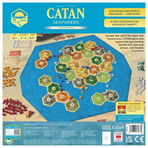 Catan - Seafarers Expansion SET SAIL FOR NEW ADVENTURES: Explore the Catanian archipelago, discover new islands, and build spectacular wonders as you expand your CATAN experience. Sales Tax: $3.78 $55.99 Add To Cart Buy Now Description Seafarers Expansion Not everyone’s content with a simple life on the shore. You? Your restless spirit cannot resist the call of the open sea! While your hometown grows and thrives, you and your rival Seafarers seek new thrills, planting fresh roots and building spectacular wonders on smaller islands in the Catanian archipelago. The rumors of gold and resources are so alluring that not even pirates, dense fog, or rough waters will keep you from your goal. Set sail into the unknown and chart your own course of discovery! Technical Data Game Details Number of Players 3 - 4 Play Time 60 - 120 minutes Ages 10+ Publisher Catan Studios