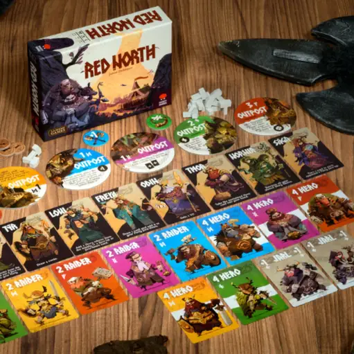 New Red North Gather your raiders for Red North, the combative game full of hidden information, as players vie for supremacy among Norse gods! Sales Tax: $1.69 $24.99 Add To Cart Buy Now Description Discover the Epic Adventure of Red North Welcome to the thrilling realm of Red North, a strategic card game that transports players into the world of Viking legends, where combat tactics and hidden strategies reign supreme. This immersive board game is designed for 2 to 4 players and offers a unique blend of bluffing and hidden information, guaranteed to keep you on the edge of your seat. Experience the Red North Board Game In the Red North board game, players take on the roles of fierce Viking warriors, deploying their raiding parties to conquer various outposts. The objective is not just to fight, but to outsmart and outmaneuver your opponents by gaining control of these critical locations. With tight competition and strategic gameplay, the tension escalates as players must balance their deployed warriors and make calculated decisions. Knowing when to commit and when to back off is key to winning you the game. Engage with Norse Gods in Red North One of the standout features of Red North is the involvement of the Norse gods during the final ""Ragnarok"" round. As the ultimate test of strategy, players must navigate the complexities of their raiding parties and deployed warriors, hoping to gain the upper hand. Will you seize control while the gods bear witness to your choices? The norse gods add an additional layer of excitement to this already compelling combative game, making each session distinct and challenging. Uncover the Strategy in Red North The strategic card game is characterized by hidden hands of various factions of warriors, which allows for deep strategic planning. Players engage in tense decisions, choosing to reveal their outposts or conceal their true intentions. Each faction has unique abilities that can influence the game’s outcome, and players must adapt their strategies while actively seeking to control the outposts. The skillful use of bluffing and insight into your opponents' tactics are all part of what makes Red North so engaging. The Legacy of Red North: New Edition of Saer Red North is not just any board game; it is a remixed version of the acclaimed Saer, originally published by La Mame Games in 2024. With updated mechanics and enhanced gameplay features, this new edition stays true to its roots while providing an enriched experience for new and returning players alike. Gather your friends and family, and embark on a journey to glory as you vie for control over the northern outposts! Gameplay Overview and Objective At the heart of the Red North game lies the objective: conquer outposts and secure victory points. Each player will deploy raiding parties and heroes strategically positioned across the play area. The deployment of warriors is crucial; however, players must also reserve their resources for the ending rounds to maintain their combat effectiveness. Tension builds as players strive for early victories, but with the looming threat of other players and the intervention of the Norse gods, every decision carries weight. Why Choose Red North? Engaging Gameplay: A combination of strategy, bluffing, and hidden information keeps every session fresh and riveting. Mystical Element: The inclusion of Norse gods enhances the depth of gameplay, adding excitement and unpredictability. Player Interaction: Designed for 2 to 4 players, fostering a competitive atmosphere where alliances may be formed and broken. Quick Play Time: A fast-paced session of approximately 30 minutes ensures that players can enjoy multiple rounds in one sitting. Rich Lore: Dive into Viking mythology, exploring the tensions and struggles of legendary heroes as they battle for supremacy. Join the Red North Adventure Today! If you're a fan of board games or trading card games, Red North will easily become a staple in your collection. Its strategic depth and player dynamics appeal to both casual gamers and hobbyists. Gather your friends and family to engage in this combative game of hidden information and experience the thrill that only the North can provide. Will you emerge victorious or find yourself at the mercy of your rivals and the gods? Technical Data Game Details Number of Players 2 - 4 Play Time 25 - 45 minutes Ages 10+ Publisher Mighty Boards Ltd.