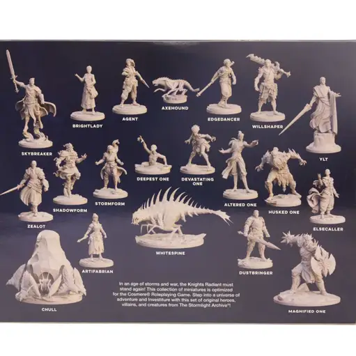 New Cosmere RPG: Stormlight Premium Miniatures Bring your Stormlight Archive RPG to life with 20 Cosmere miniatures designed for immersive tabletop gameplay! Sales Tax: $2.70 $49.99 $39.99 Add To Cart Buy Now Description Cosmere RPG Stormlight Premium Miniatures for Cosmere Roleplaying Game CampaignsBring your tabletop to life with the Cosmere RPG: Stormlight Premium Miniatures, a detailed collection designed for the The Stormlight Archive and the expansive universe created by Brandon Sanderson. Crafted specifically for the cosmere roleplaying game, this set of 20 miniatures transforms your sessions into a fully visual and immersive experience.Set in an age of storms and war, where the Knights Radiant must rise again, these miniatures represent heroes, villains, and creatures drawn from the Stormlight Archive. Whether you are running a structured campaign or a standalone adventure, this set provides the physical presence needed to enhance storytelling and gameplay.Cosmere Stormlight Miniatures for Immersive Tabletop GameplayThe cosmere stormlight setting is defined by its sweeping scale, intense conflicts, and powerful characters. The Stormlight Premium Miniatures bring those elements directly to your table, allowing players to visualize encounters and environments with greater clarity.Each miniature represents a character or creature from the world of Roshar, helping to:Create a stronger sense of place during gameplayEnhance combat encounters with clear positioningSupport narrative moments with visual representationBy adding physical components to the table, these miniatures help players stay engaged and connected to the story.Stormlight Archive RPG Miniatures for Combat and ExplorationCombat and exploration are key components of the stormlight archive rpg, and miniatures play an important role in managing these aspects of gameplay.With the Stormlight Premium Miniatures, game masters can:Track character positions during combat scenariosRepresent enemies and allies in real timeBuild encounters that feel dynamic and interactivePlayers benefit from a clearer understanding of the battlefield, allowing them to make informed decisions and coordinate strategies more effectively.This level of clarity supports both fast turns and meaningful gameplay.Cosmere Roleplaying Game Visual Storytelling ToolsThe cosmere roleplaying game emphasizes narrative depth, and the Stormlight Premium Miniatures enhance this by adding a visual dimension to storytelling.Miniatures can be used to:Represent key characters during important scenesHighlight significant moments in the storyCreate memorable encounters that stand outThis visual element helps bridge the gap between imagination and gameplay, making each session more engaging for everyone at the table.Cosmere RPG System Integration with Characters and CreaturesDesigned to integrate seamlessly with the cosmere rpg, these miniatures align with the system’s focus on character driven storytelling and dynamic encounters.The set includes a variety of figures representing:Original heroes shaped by the world of RosharVillains that challenge players and drive conflictCreatures that reflect the unique environment of the settingThis variety ensures that game masters have the tools needed to create diverse and engaging encounters throughout their campaigns.Cosmere Stormlight Worldbuilding Through Physical ComponentsThe cosmere stormlight universe spans multiple cultures, environments, and narrative elements. The Stormlight Premium Miniatures support this complexity by providing physical representations that help bring the world to life.By placing miniatures on the table, game masters can:Build scenes that feel grounded and immersiveIntroduce new elements into the story with visual impactReinforce the scale and scope of the campaign settingThis approach enhances worldbuilding and makes it easier for players to engage with the environment around them.Stormlight Archive RPG Campaign Enhancement and DepthFor groups running long term campaigns, the Stormlight Premium Miniatures add depth and consistency to gameplay. Characters and creatures can be represented consistently across multiple sessions, creating a sense of continuity.This is particularly useful for:Campaigns that span multiple locations within RosharAdventures that involve recurring characters or enemiesWorldhopper campaigns that connect different worldsBy maintaining a consistent visual representation, the miniatures help reinforce the narrative and make the story more cohesive.Cosmere Roleplaying Game Accessibility for All PlayersThe Stormlight Premium Miniatures are designed to enhance gameplay for players at every level of experience. For new players, they provide a clear and intuitive way to understand positioning and interactions during gameplay.For experienced players, the miniatures add a layer of strategy and immersion, allowing for more detailed planning and execution during encounters.This makes the set ideal for:Roleplaying gamers looking to enhance their sessionsBoard gamers who enjoy tactical gameplayHobbyists who appreciate detailed tabletop componentsCosmere Stormlight Design Inspired by the UniverseEach miniature in the set is inspired by the themes and aesthetics of the cosmere stormlight universe. From the design of characters to the details of creatures, the set reflects the tone and atmosphere of the Stormlight Archive.This attention to detail ensures that the miniatures feel like a natural extension of the world, enhancing immersion and creating a stronger connection between gameplay and story.Cosmere Roleplaying Game Created by Industry ExpertsDeveloped in collaboration with Brotherwise Games and contributors including Andrew Fischer, the Stormlight Premium Miniatures reflect a commitment to quality and thoughtful design.Each figure is crafted to work seamlessly within the cosmere roleplaying game system, ensuring that players and game masters can integrate them into their sessions without di