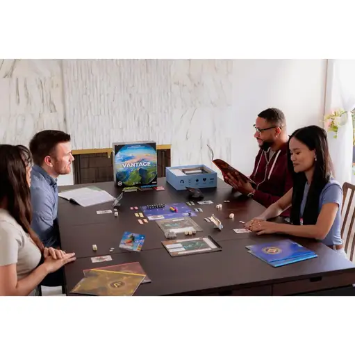New Vantage Vantage delivers what most board games only promise: complete freedom to explore an entire planet at your own pace, in your own direction, with consequences that matter. Sales Tax: $6.08 $90 Add To Cart Buy Now Description Vantage Board GameYour Gateway to Open-World Board Game AdventureVantage delivers what most board games only promise: complete freedom to explore an entire planet at your own pace, in your own direction, with consequences that matter. This cooperative adventure game from Stonemaier Games drops you and your companions onto an uncharted planet after your intergalactic vessel crash lands, scattering everyone across vast distances. From that moment, the world becomes your sandbox.Unlike linear narrative games or structured campaign game experiences, Vantage plays out differently every session. You view your current location from a first-person perspective—seeing only what your character sees—while players communicating across the game board share discoveries and coordinate survival. The nearly eight hundred interconnected locations spread across four hundred double sided location cards create an open world game unlike anything else on your shelf. Whether this becomes your first game in the exploration genre or sits alongside favorites like 7th Continent and Sleeping Gods, Vantage offers a play experience that rewards curiosity over optimization.Victory isn’t prescribed either. Pursue mission victory, achieve a personal destiny victory, claim epic victory by completing both, or simply define success through whatever you discover and accomplish. The planet doesn’t care about your objectives—it simply exists, waiting.Why You’ll Love VantageMassive Open World – Explore nearly 800 locations with over 900 discoverable cards ensuring you’ll encounter something new multiple times before seeing repeatsCooperative Yet Independent – Work together while experiencing your own unique journey; other players can support you, but only you can see your starting location and make decisions thereInfinite Replayability – Randomized crash positions, different mission card draws, and the sheer volume of content mean every game unfolds differentlyFlexible Victory Conditions – Choose mission objectives, personal destiny fulfillment, epic victory combining both, or create your own meaningful successAccessible Game Mechanics – Roll dice for challenges while spending skill tokens to manage risk, balancing strategy game depth with approachable gameplayWhat Makes Vantage DifferentMost other games in the exploration genre require campaign commitments, legacy components, or dozens of hours before the full game reveals itself. Many adventure game designs force linear progression through predetermined story beats.Vantage is built differently:True Open World Experience – No scripted paths or mandatory sequences; explore any direction with complete freedom from your first play forwardFirst Person Perspective Design – Each player sees only their location while separated by vast distances, creating genuine mystery about what lies beyondStandalone Sessions – This is not a campaign game; each session is self-contained, requiring no multi-session commitment while still offering depth that rewards those who play Vantage repeatedlyWhere 7th Continent pioneered card-based exploration and Sleeping Gods delivered narrative depth, Vantage combines sandbox freedom with the immediacy of contained sessions. You bring nothing forward except knowledge—understanding which terrain to avoid, which resources matter, how the same planet reveals different secrets depending on your approach.How Vantage WorksCrash and Survive Your intergalactic vessel heading toward an uncharted planet fails catastrophically. Each player starts at a different randomized starting location, scattered across the world with no line of sight to companions.Explore and Interact On your turn, choose one action at your location—options include movement, investigation, engagement, and more. Roll challenge dice to determine costs in Health, Time, or Morale. Spending skill tokens (wooden skill tokens included) reduces dice rolls or mitigates losses. Once you’ve taken an action at a location, that same card won’t offer it again this session.Achieve Victory Complete your mission card objectives for mission victory. Fulfill personal destiny through your character card for destiny victory. Accomplish both for epic victory. Or ignore all of it and pursue whatever the planet reveals—side quests, mysteries, pure exploration. Success is what you decide it means.The game works through this simple loop: choose action, roll dice, accept consequences, move forward. Complexity emerges from decisions, not rules overhead.Game Components and DetailsLocation Cards: 415 double sided cards creating approximately 800 dice placement locations to exploreDiscoverable Cards: 912 standard cards containing items, events, encounters, and secretsStorybooks: 8 books providing narrative depth (6 include reference guides)Book of Vantages: Character destiny and vantage referenceDice: 20 challenge dice, 12 skill dice with custom facesTokens: 60 boost tokens, 60 skill tokens, 45 cardboard coins (metal coins available separately)Player Components: Personal boards, location card holders, health/morale/time trackers for each playerGame Board: Central tracking board (“The Center”)Player Count: 1-6 players (optimal at 2-3 for balanced pacing) Game Length: 45 minutes to 3+ hours depending on objectives and exploration depth Age Range: 14+ recommended Complexity: Medium weight—accessible but rich Box Size: 300×300×100mm Designer: Jamey Stegmaier Publisher: Stonemaier Games Artists: Valentina Filić, Sören Meding, Emilien RotivalWho Vantage Is Perfect ForIdeal for:Adventure game enthusiasts wanting open world exploration in tabletop formatCooperative play fans seeking shared storytelling with individual agencyNarrative games lovers who prefe