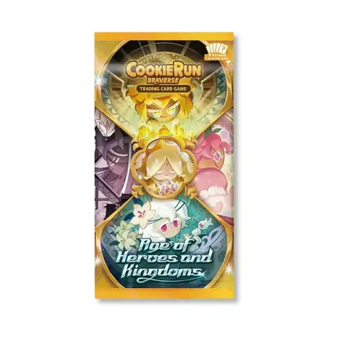 CookieRun TCG: Age of Heroes and Kingdoms Booster Pack Age of Heroes and Kingdoms Booster Pack Sales Tax: $0.22 $3.25 Add To Cart Buy Now Description Through the synergy created by the five Ancient Cookies with immense power and the mysterious Soul Jams, you can enjoy not only deep strategic choices but also visually stunning deck compositions, enhanced by beautiful illustrations. The moment you play a card, you’ll feel the vivid atmosphere of the battlefield come to life. 9 cards per pack 232 regular + 73 hidden cards total 90 Commons 70 Uncommons 20 Rares 30 Super Rares 22 Ultra Rares Technical Data Product Details Release Date October 10, 2025