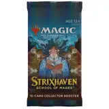 New Strixhaven: School of Mages Collector Booster Pack The Collector Booster gives players immediate access to the coolest, most desirable cards from the Strixhaven: School of Mages set. Each Collector Booster is packed with the most exciting offerings. It’s a supercharged booster experience. Sales Tax: $3.71 $54.99 Add To Cart Buy Now Description The Collector Booster gives players immediate access to the coolest, most desirable cards from Strixhaven: School of Mages.Each Collector Booster is packed with the most exciting offerings. It’s a supercharged booster experience.KEY PRODUCT FEATURES • 15 Strixhaven cards • 1 foil token • Shortcut to the coolest cards in Strixhaven • Only Strixhaven boosters with Foil Etched cards and Extended-Art • 1 Foil Etched Japanese Alt-Art Mystical Archive card in every pack + up to 2 additional Japanese Alt-Art Traditional Foils • Total of 3–4 Mystical Archive cards in a pack—2 Foil Etched in every pack • Choose your college at the most prestigious university for magical learning in MTG’s Multiverse CONTENTS The Strixhaven: School of Mages Collector Booster Pack contains 15 Magic cards and 1 foil double-sided token, with a combination of 5–6 Rare or Mythic Rare cards, 4–5 Uncommons, and 5–6 Commons (2 foil etched cards, 11 traditional foils, and 2 nonfoils). Every Strixhaven Collector Booster contains a total of 6 cards with special alt-frame treatments, including 1–3 Extended Art cards, 0–2 Borderless cards, and 3–4 Mystical Archive cards (2 foil etched and 1–2 traditional foils, with 1–3 Japanese alt-art variants). One foil etched Mystical Archive Rare, Mythic Rare, or Uncommon is always a foil etched Japanese alt-art Mystical Archive card. Technical Data Product Details Release Date September 26, 2025