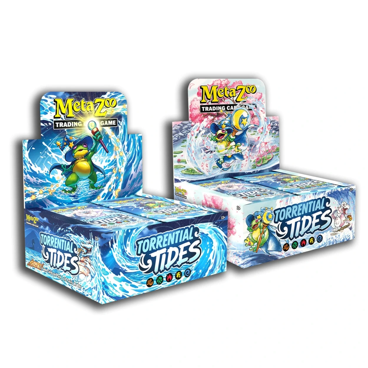 MetaZoo Torrential Tides Booster Packs Dive into a powerful new chapter of the MetaZoo universe with MetaZoo Torrential Tides, a dynamic release in the MetaZoo TCG that introduces Water Aura in a major way. Sales Tax: $0.27 $3.99 Add To Cart Buy Now Description MetaZoo Torrential Tides – Trading Card Game Booster PacksDive into a powerful new chapter of the MetaZoo universe with MetaZoo Torrential Tides, a dynamic release in the MetaZoo TCG that introduces Water Aura in a major way. This trading card game booster pack set expands the ever-growing world of MetaZoo, bringing new cryptids, fresh gameplay strategies, and a wave of opportunities for players to build stronger decks and compete in exciting matches.Whether you are a longtime fan of MetaZoo or just beginning your journey into trading card games, Torrential Tides offers a compelling experience filled with discovery, strategy, and collectible appeal. Every booster pack gives you the chance to find new cards, refine your deck, and shape your approach to the game.Enter the Expanding World of MetaZooThe MetaZoo game continues to grow with each release, supported by a passionate community and a dedicated development team focused on creating engaging gameplay and memorable designs. Inspired by folklore, legends, and cryptids from across the world, MetaZoo stands apart from other trading card games by blending storytelling with strategic depth. MetaZoo combines a lore-heavy theme of American folklore with strategic mechanics comparable to leading modern trading card games.Fans familiar with systems developed by The Pokémon Company International will recognize the appeal of building a deck, managing resources, and competing in matches. However, MetaZoo introduces its own identity through unique rules, aura mechanics, and a focus on real-world-inspired creatures. MetaZoo is a collectible trading card game centered around American cryptozoology, folklore, and paranormal legends, featuring creatures known as "Beasties" such as Mothman and Bigfoot.With Torrential Tides, the MetaZoo TCG evolves once again, adding Water Aura to the mix and opening up new ways for players to explore the game. Aura in MetaZoo is divided into types such as Air, Earth, Fire, and Lightning, with Water as the newest addition.History of MetaZooMetaZoo began its journey in 2020, launching as a tabletop collectible card game that quickly captured attention with its cryptid-inspired creatures and folklore-driven gameplay. The game’s original publisher, MetaZoo Games LLC, found early success but struggled with store support and order fulfillment, leading to community frustration and, ultimately, bankruptcy in 2024. Despite these setbacks, the world of MetaZoo proved resilient. The intellectual property was acquired by MetaTwo Enterprises LLC, and GameQbator Labs took over development, promising a revitalized game with redesigned mechanics and improved gameplay. This new chapter ensures that MetaZoo’s unique blend of cryptids, engaging creatures, and strategic support continues to evolve for fans and new players alike.Discover the Power of Water AuraOne of the most exciting aspects of this set is the introduction of Water Aura creatures. These cards bring a fresh dynamic to gameplay, offering new effects, abilities, and strategies that can influence the field in powerful ways.Water Aura adds another layer of decision-making to each match. Players must consider how to balance their resources, when to play certain cards, and how to respond to opponents who may be using similar or completely different strategies. In MetaZoo, players use the Aura resource system to pay for contracting cards, similar to Energy in Pokémon or Mana/Lands in Magic: The Gathering.For example, the abilities of Water Aura creatures work by triggering under certain conditions or disrupting opponents by altering the flow of the round. These interactions create a constantly changing environment where adaptability is key.Build Your Deck With PurposeEvery MetaZoo booster pack is an opportunity to expand your collection and improve your deck. In Torrential Tides, the addition of Water Aura cards allows players to experiment with new combinations and refine their strategies. To build a deck in MetaZoo, you need 1 Caster, 2 Starter Terras, 10 Aura cards, and 50 main deck cards, with no more than three copies of any card with the same name in the main deck.Deck building is at the heart of the MetaZoo TCG. Each card you add contributes to your overall approach, whether you focus on dealing damage, controlling the field, or achieving mission points through clever use of effects.Players can mix Water Aura with other types to create balanced decks or focus heavily on one type to maximize its potential. Your Caster choice determines your primary Aura type, and you may include cards of a second Aura type if it is indicated in the allied Aura box on your Caster. Note: When building your main deck, you must ensure that it aligns with your primary Aura type and any allied Aura type you choose to include, while adhering to the card limit rules.A Gameplay System That Rewards SkillMetaZoo gameplay is designed to be both accessible and rewarding. Each match begins with a pre game setup, where players prepare their deck, arrange their field, and get ready for the first turn. MetaZoo now uses a lane-battler format where players accumulate victory points, called Mission Points (MP), instead of reducing life points.During the game, players take turns performing actions such as placing cards, activating effects, and attacking with creatures. The goal is to score mission points by successfully managing your resources and achieving specific objectives. The first player to reach 30 Mission Points is declared the winner.Aura serves as the primary resource in the game. Paying the correct amount of aura allows you to play cards and activate abilities. Each round consists of three phases: the draw phase, the Aura phase, and th