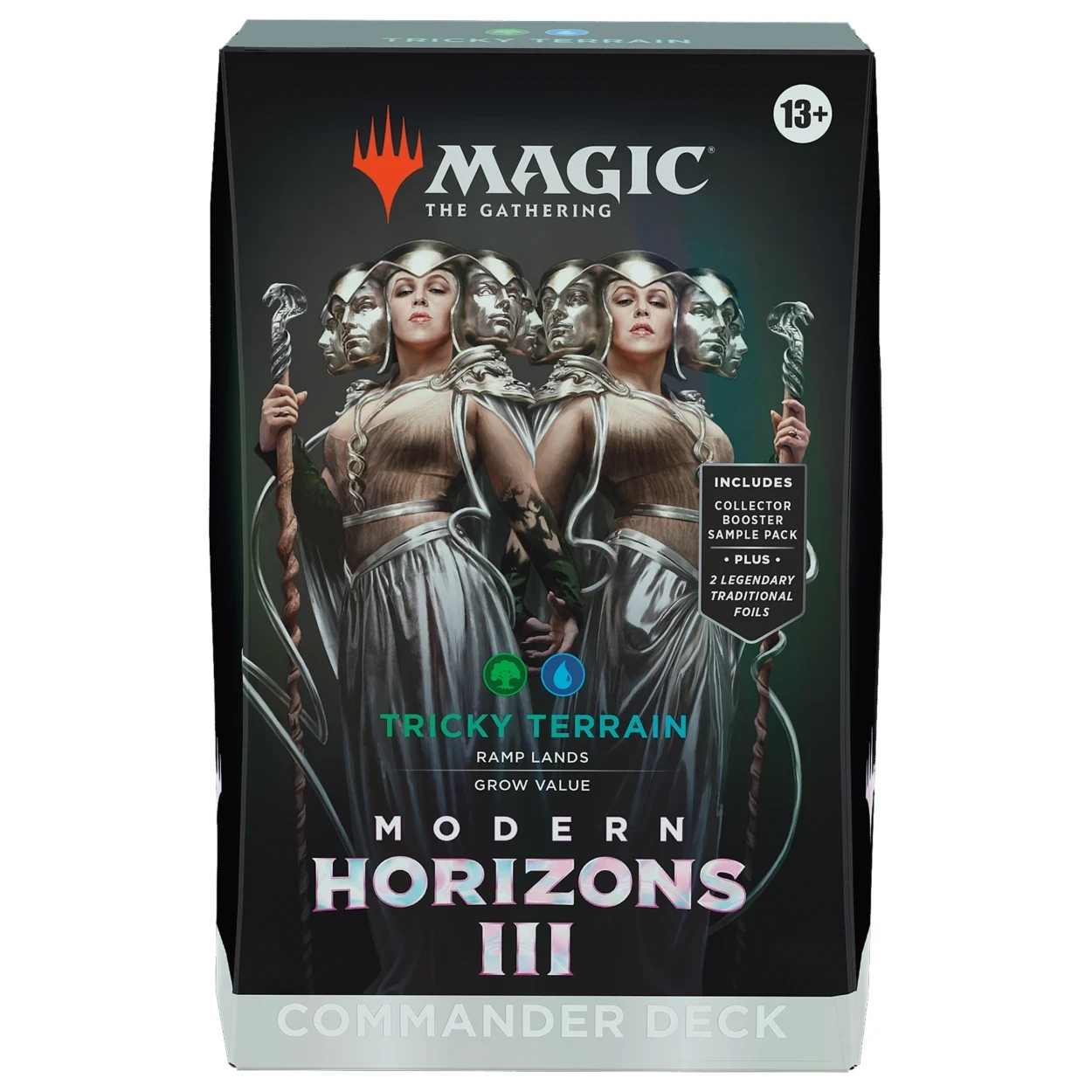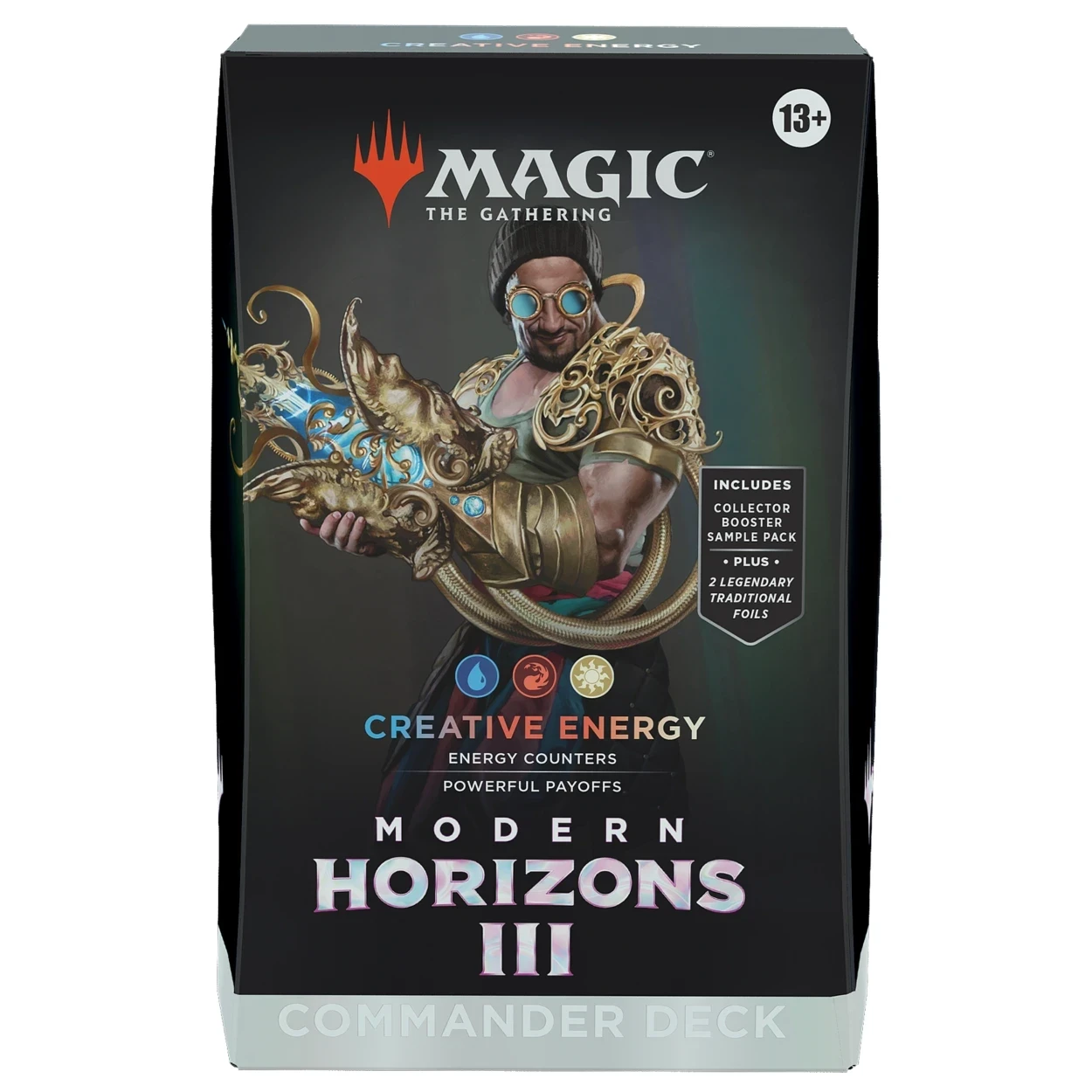 New Modern Horizons 3 Commander Deck Step into the evolving landscape of MTG with the Modern Horizons 3 Commander Deck, a standout release in the world of Magic The Gathering that brings together innovation, accessibility, and competitive depth. Sales Tax: $3.04 $44.99 Set Creative Energy Graveyard Overdrive Tricky Terrain +$10 Eldrazi Incursion +$60 Add To Cart Buy Now Description Step into the evolving landscape of MTG with the Modern Horizons 3 Commander Deck, a standout release in the world of Magic The Gathering that brings together innovation, accessibility, and competitive depth. Designed for players who want to experience the best of Commander Decks without the need to build from scratch, this set of Preconstructed Commander Decks delivers a complete package for both casual and dedicated fans of MTG Precons.Whether you’re a longtime player who follows every Release Date or one of the many New Players discovering Magic for the first time, this product represents a defining moment in the ongoing History of Magic The Gathering. With powerful mechanics, carefully balanced Power Levels, and a focus on multiplayer Games, the Modern Horizons 3 Commander Deck is built to help Everybody sit down, shuffle up, and Play Magic.MTG: A New Chapter in Modern Horizons 3The Modern Horizons 3 Commander Deck builds on the legacy of the Modern Horizons line, known for introducing fresh mechanics, revisiting classic ideas, and shaping the Future of MTG. Magic: The Gathering was created by Richard Garfield and released by Wizards of the Coast in 1993, marking the debut of the first trading card game. This release continues that tradition by offering four distinct Commander Precons, each crafted with its own identity, Strategy, and gameplay focus.Unlike standard expansions, Modern Horizons sets are designed to push boundaries. They bring together Elements from across Magic’s many Worlds, as Wizards continues to create new gathering cards, expanding the game's history and legacy. The first expansion set, Arabian Nights, was released in December 1993, just months after the game's general release on August 5, 1993, and Magic sold out its initial supply of 10 million cards by October of the same year. From 2008 to 2016, over twenty billion Magic cards were printed, and by February 2023, the player base had reached fifty million worldwide—testament to the game's immense growth and enduring popularity.For players who enjoy exploring the Difference between formats, experimenting with new Decklist builds, or refining their approach to Commander, this set provides a rich foundation.What’s Included: Four Complete Commander DecksThis product includes four fully built Commander Decks, each containing a number of 100 Cards and designed for immediate Play. These Commander Decks are:Graveyard OverdriveTricky TerrainCreative EnergyEldrazi IncursionEach Deck is a self-contained experience, complete with:A number of 100 Cards spanning lands and spells—lands produce mana, while spells consume it—including Instants, Sorceries, Creatures, Enchantments, Artifacts, and Planeswalkers; 2 foil legendary Creature options includedA cohesive Decklist built for synergy and consistency10 double-sided TokensA life tracker to manage your Life totalA deck box for storageA Collector Booster Sample Pack with special Art treatmentsWith All the Cards included, there’s no need to search for additional pieces. You can open the box, shuffle your Deck, and jump straight into Games with Friends.Built for Multiplayer Commander GameplayThe Commander format is at the heart of this product. Known for its social gameplay and dynamic interactions, Commander allows players to Compete in multiplayer settings where every decision matters. During a typical game, players proceed through the following sequence of phases—untap, upkeep, draw, main, combat, and end step—passing priority to each other to respond or continue actions, and may pass when they are done with their actions in a phase.Each Deck is built around a legendary Creature that serves as your Commander, guiding your Strategy and shaping how your Cards interact. With 100-card singleton rules, no two games feel the same, creating a sense of Chaos and unpredictability that keeps players engaged.This format is ideal for:Casual Games with FriendsOrganized Events at your Local Game StoreTesting Strategy ideas in a flexible environmentPlayers typically aim to reduce their opponents' life totals from 20 to zero through strategic combat and resource management using mana.Whether you’re aiming to Win through careful planning or simply enjoy the experience, Commander offers something for Everybody.Unique Strategies Across Four DecksEach of the four Commander Precons in this set introduces a distinct playstyle, giving players multiple ways to approach the game. MTG decks are often classified into brackets based on power level and archetype—Aggro (fast), Control (slow), and Midrange (balanced)—with each bracket reflecting different strategies, card choices, and overall deck strength. This bracket system helps players assess where a deck falls in terms of competitiveness and play experience, though it's important to note that bracket ratings can sometimes be inconsistent or misleading without experienced judgment.The Creative Energy deck, for example, can be compared to the Fall Out Energy precon, which is often discussed in terms of its bracket placement. While some may rate the Fall Out Energy precon higher or lower than Creative Energy, actual performance and synergy often reveal strengths or weaknesses that bracket ratings alone may not capture. Creative Energy stands out by focusing on synergy and card advantage, ensuring a balanced mana curve and clear win conditions—key fundamentals for successful deck building.A well-structured deck in this set typically includes cards that provide card advantage, interaction or removal, and a defined win condition, preventing players from r