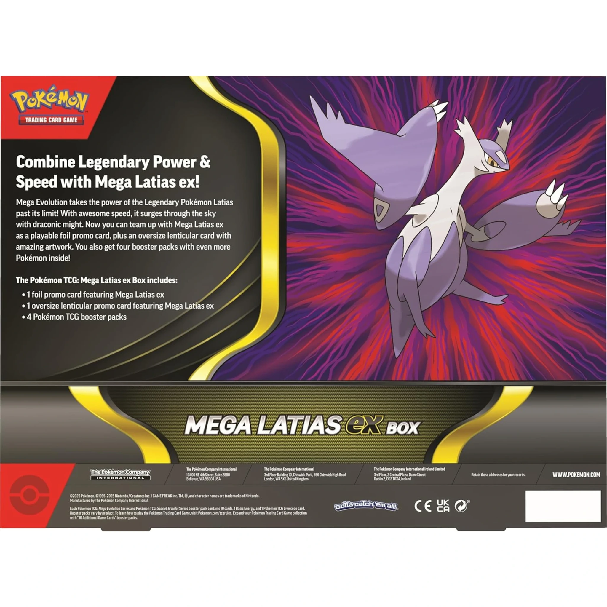 Stock Status: Pre-Order Available Stock Status: Pre-Order Available Stock Status: Pre-Order Available Stock Status: Pre-Order Available Pre-Order Pokemon Mega Latias ex Box -- LIMIT 1 -- Add Mega Evolution to your collection with the Pokemon Mega Latias ex Box—includes a promo, oversized card, and booster packs! Sales Tax: $2.02 $49.99 $29.99 Add To Cart Buy Now Description NOTE: Orders containing a pre-order item will not ship until the last pre-order item is available to be shipped. NOTE: Your payment will be processed at the time of your order.Pokemon Mega Evolution 2 and the Rise of Mega Latias exThe Pokemon Mega Latias ex Box represents a milestone moment in the expanding story of pokemon mega evolution 2. Legendary Pokémon return with renewed power, and Mega Latias ex takes center stage with breathtaking speed and strength. For fans of the Pokémon Trading Card Game, this box bridges nostalgia and innovation, blending iconic Mega Evolution mechanics with fresh 2025 Pokémon designs.Latias has always been admired for its grace, loyalty, and psychic-dragon heritage. Now, through the power of Mega Evolution, Latias ex transforms into a soaring force that dominates the battlefield. The foil promo card of Mega Latias ex is not only playable but also collectible, and the oversized lenticular version showcases detailed artwork that fans will want to display. Combined with four booster packs and a box design celebrating Mega Evolution, this set is both a collector’s centerpiece and a competitive player’s treasure.The Power of Pokemon Mega Evolution in TCGSince its debut, pokemon mega evolution has been one of the most thrilling features in the TCG and video games. With the release of pokemon mega evolution 2, trainers gain access to cards that resemble the raw force of Mega Pokémon while introducing refined mechanics for modern gameplay.Mega Latias ex embodies this perfectly. Known for its speed and tactical precision, Mega Latias ex dominates with draconic attacks that can pressure opponents quickly. In combination with supporter cards and energy acceleration, this Mega Pokémon sets the pace of battle. Its high HP and strong abilities make it a threat that can’t easily be knocked out, especially in matches where tempo and pressure define victory.The Pokémon Company International, Game Freak Inc., and Nintendo Creatures Inc. have worked together to bring back Mega Evolution with respect to its origins while ensuring it fits into today’s TCG standards. This box is not only a nod to the past but also a forward-looking design choice for competitive play.Pokemon Phantasmal Flames and Legendary ConnectionsAlthough the Pokemon Mega Latias ex Box focuses on Latias, it connects thematically with the pokemon phantasmal flames expansion, which released in late 2025. Phantasmal Flames features Mega Charizard X ex soaring in fire and Mega Gengar ex rising from the shadows, while Mega Latias ex complements this fiery-dark expansion with speed and psychic-dragon energy.The connection between sets allows collectors to build thematic decks that combine Mega Pokémon across expansions. For players already building around Phantasmal Flames, adding Mega Latias ex to their lineup provides additional strategies and collector’s depth.By including booster packs that may draw from Phantasmal Flames and related 2025 Pokémon expansions, the Mega Latias ex Box ensures that fans feel part of the broader story arc in the trading card game.Why Pokemon Cards Like Mega Latias ex Matter to CollectorsIn the Pokémon community, pokemon cards are more than pieces of cardboard—they are memories, strategy tools, and collector’s art. The Mega Latias ex promo represents all three.Playable Power: As a foil promo card, Mega Latias ex can be slotted directly into decks. Its stats and abilities reflect the design focus of tcg mega evolution, where raw speed and draconic attacks can shift the momentum of a game.Collector Appeal: The oversized lenticular card included in the box features dynamic art that brings Latias to life. The shimmering surface changes as the card is tilted, making it a unique display piece.Booster Pack Potential: Each box contains four booster packs. For fans, the thrill of opening a pack, seeing rare full art or special illustration rares, and possibly pulling another favorite Pokémon is part of the experience.In 2025, the Pokémon card market continues to thrive globally. Hobby shops, official online stores operated by The Pokémon Company International, and collectors’ communities in other countries have embraced Mega Evolution as a return to form. Mega Latias ex stands out as one of the most talked-about promos this year.Pokemon TCG Mega Evolution and Competitive PlayThe pokémon tcg mega evolution mechanic redefines deckbuilding. Mega Latias ex introduces balance between offensive pressure and defensive endurance. In combination with Mega Charizard, Mega Lucario, Mega Venusaur, and Mega Gardevoir, trainers now have access to an array of strategies centered around Mega Evolution.Competitive players understand the importance of tempo. Mega Latias ex attacks quickly, builds momentum, and forces the opponent to react. Combined with supporter cards and new ex Pokémon from the 2025 expansions, it creates synergy that rewards creative strategies.For collectors, this box is also a reminder of how the TCG has evolved since 1995. The partnership between Nintendo, Creatures Inc., and Game Freak continues to shape one of the most enduring card games in history.Box Contents and FeaturesThe Pokemon Mega Latias ex Box includes everything fans need to start enjoying Mega Evolution in their collection:1 foil promo card featuring Mega Latias ex1 oversize lenticular promo card featuring Mega Latias ex4 Pokémon TCG booster packs containing random new cards, energy, and possible raresA beautifully designed box for display or storageThe combination of a playable promo, display-worthy oversize card, and 